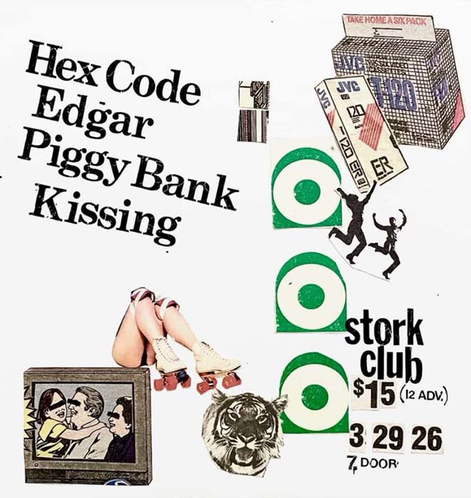 Hex Code, Edgar, Piggy Bank, Kissing. Sunday March 29, at Thee Stork Club, Oakland. 7pm door, $12adv, $15 at the door.