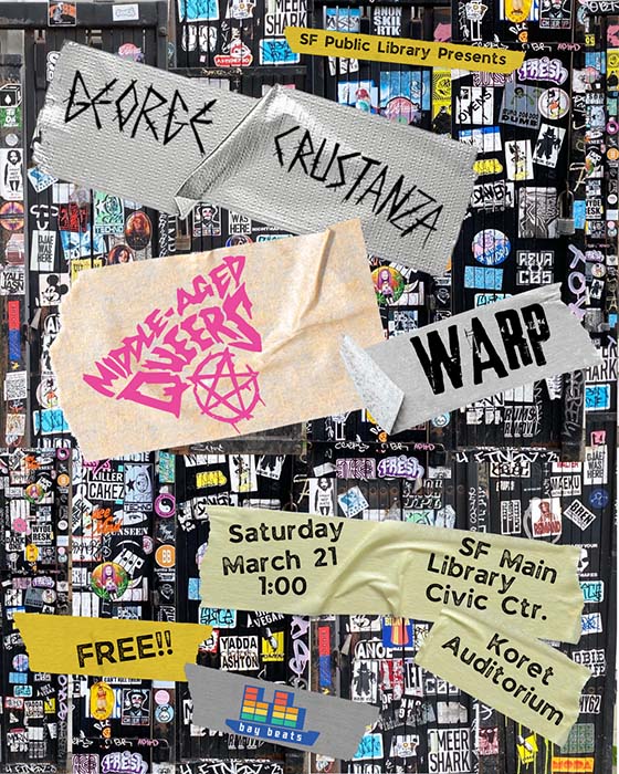 George Crustanza, Middle-Aged Queers, WARP. Saturday March 21, at Koret Auditorium, SF Main Branch Library, Civic Center, SF. 1pm, FREE.